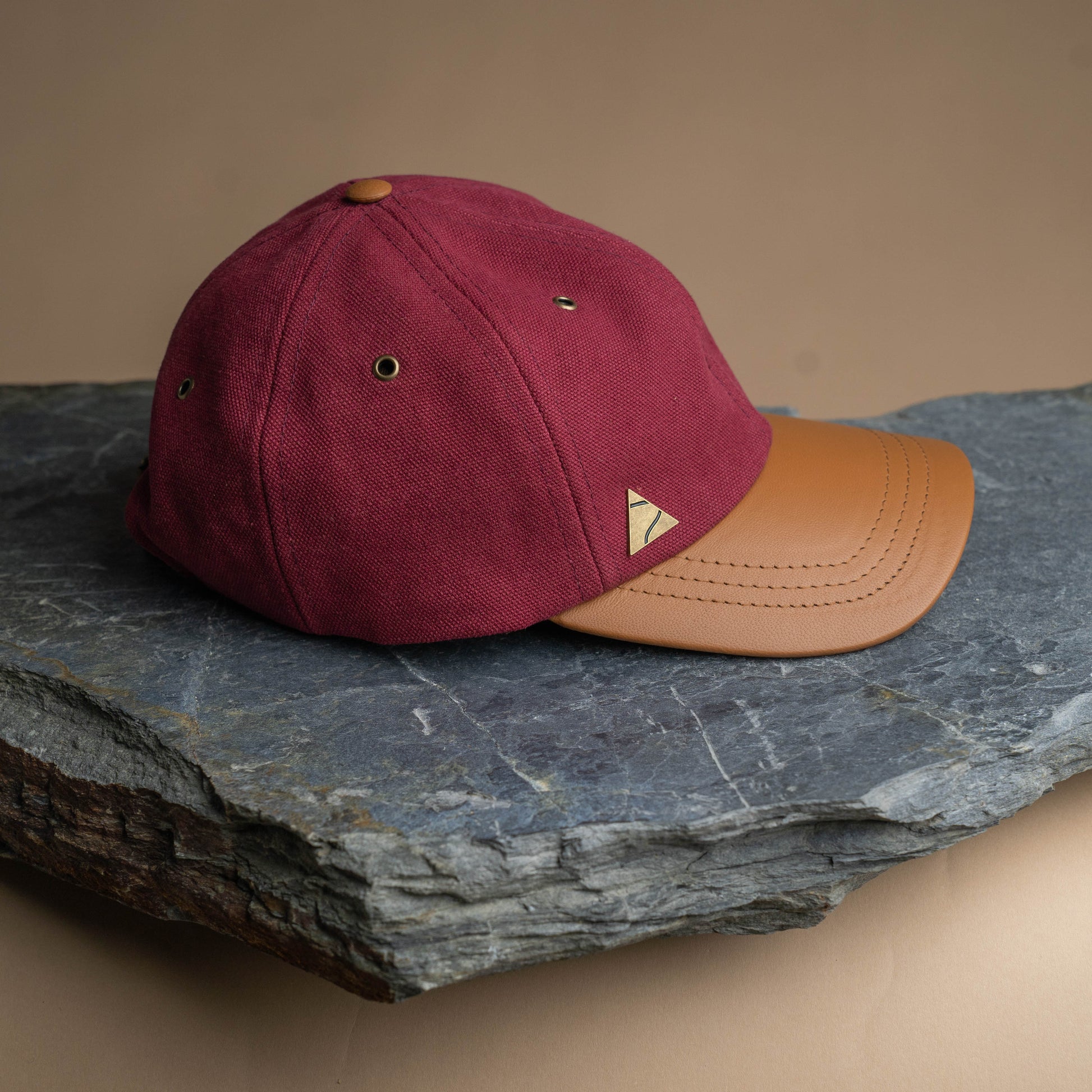 Fujikinbai Lupin Burgundy Cap - Leather & Brass